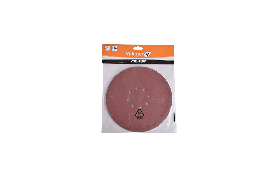 Disco de lixagem Villager vermelho com orifícios, grão 120, embalagem plástica com etiqueta